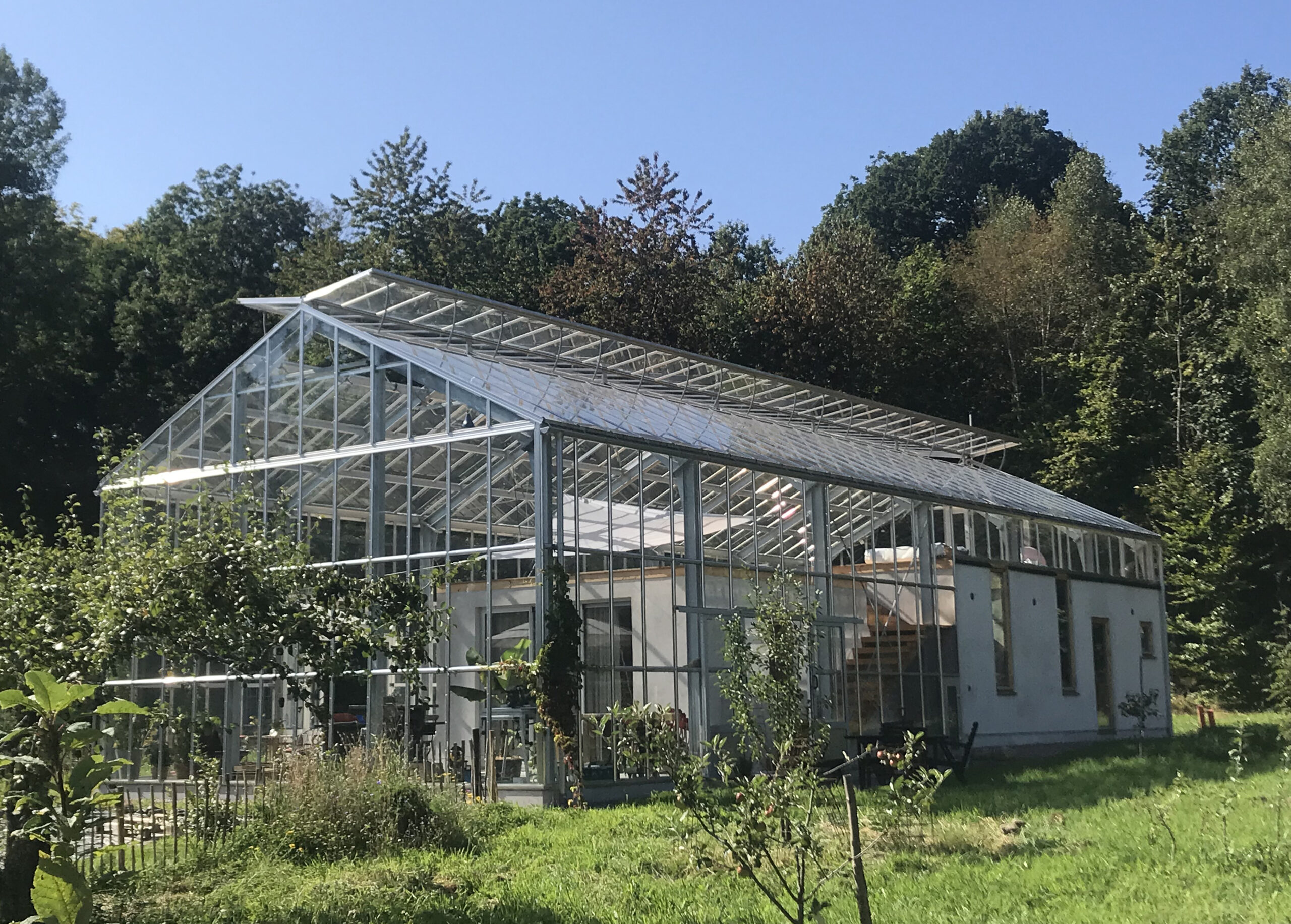 VÄXTHUSET ger ett väderskyddande skal som gör att vi kan ha utökad verksamhet stora delar av året. Glaset skyddar mot vind, nederbörd och uv-ljus, vilket minskar slitage och avkylning. Här ska vi odla, men det ska också bli en plats för arbete, möten, kunskapsdelande verksamhet där vi kan ta emot människor i samband med föreläsningar och workshops, av oss och av inbjudna gäster och samarbetspartners. Väderskalet ger oss möjlighet att jobba med materiallösningar som annars inte är lämpade för ett nordiskt klimat.