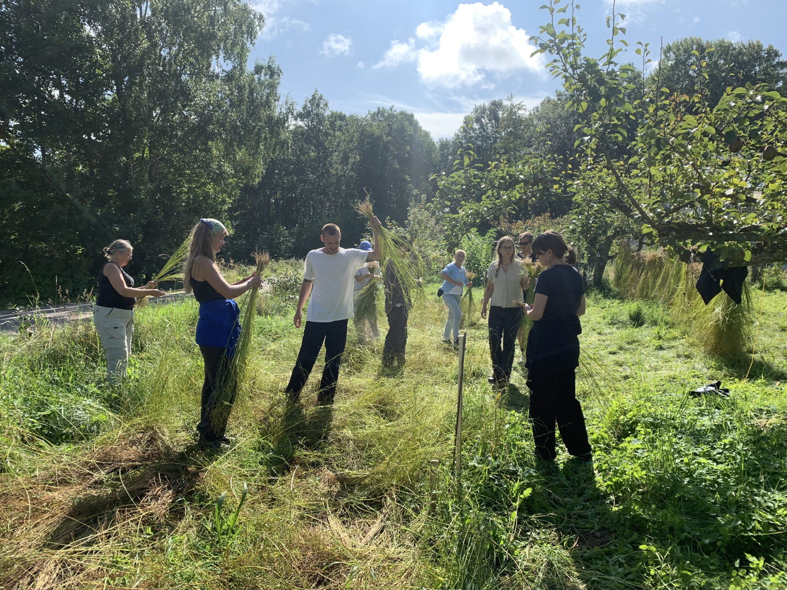 Under sommaren 2024 odlade konstnären Christin Wahlström Eriksson 100m2 lin i den gamla fruktträdgården. I samband med skörden ställde vi till med ”Ryckkalas” som innefattade presentation av Christins projekt, linryckning, kaffekalas samt gästande av Molly Rygg, Lya Gård/Slättåkra som berättade om hur det är att odla regenerativt.