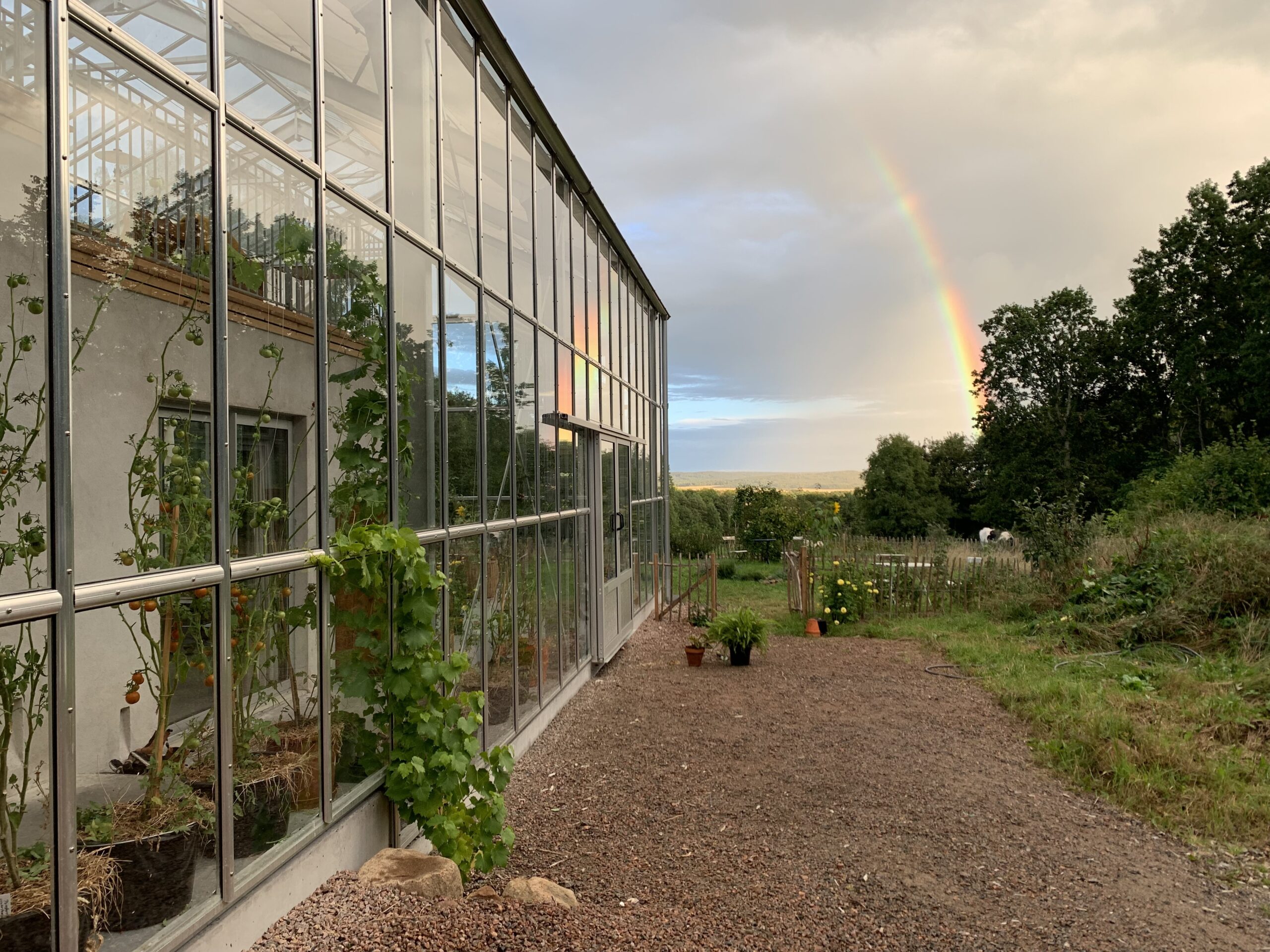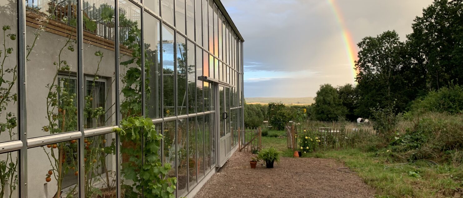 Ytterväggarna består av hampakalk som kompletterats med en bärande trästomme. Att använda hampakalk är ett sätt att bygga vidare på en tradition av jordhusbyggande medan växthuset speglar platsens arv av odlande. Växthuset blir ett väderskydd som gör det möjligt att använda byggnaden på ett friare sätt än vad klimatet annars tillåter under stora delar av året. Dessutom bidrar det med unika rumsliga kvaliteter. Ett exempel är husets takterrass som genom växthusets klimatskydd blir till en omsluten plats inomhus.